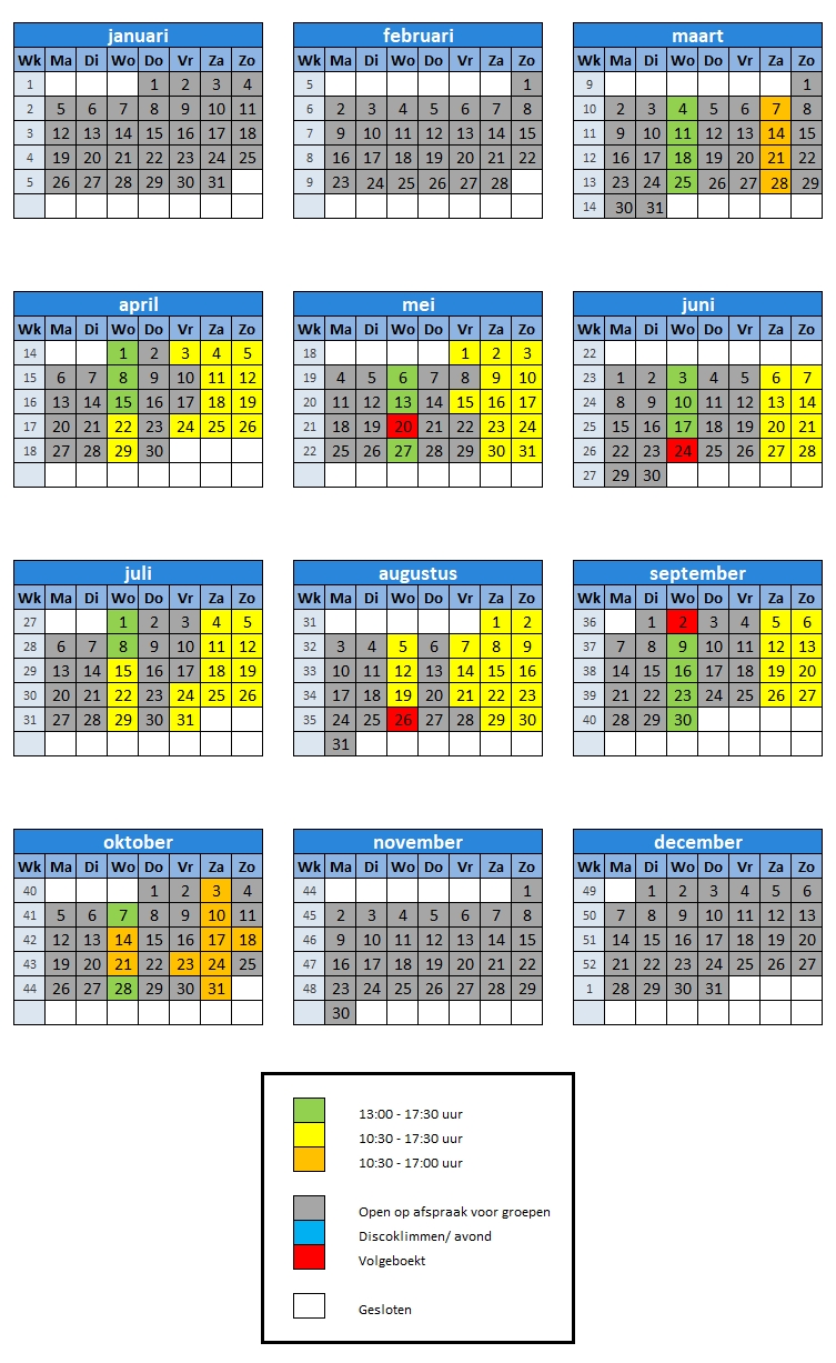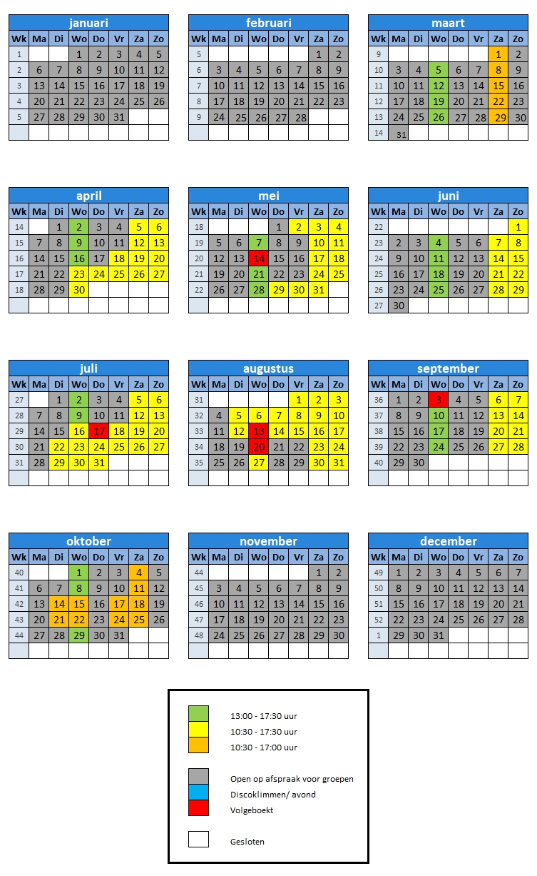 De kinderfeestjes voor het klimpark worden online geboekt. U kunt onder de knop online boeken alles voor uw feestje vastleggen, incl opties als smulbox of zwembad. Datum verzetten kan tot 48 uur voor het feestje. Info die u niet op de site vindt kunt u uiteraard ook telefonisch vragen.